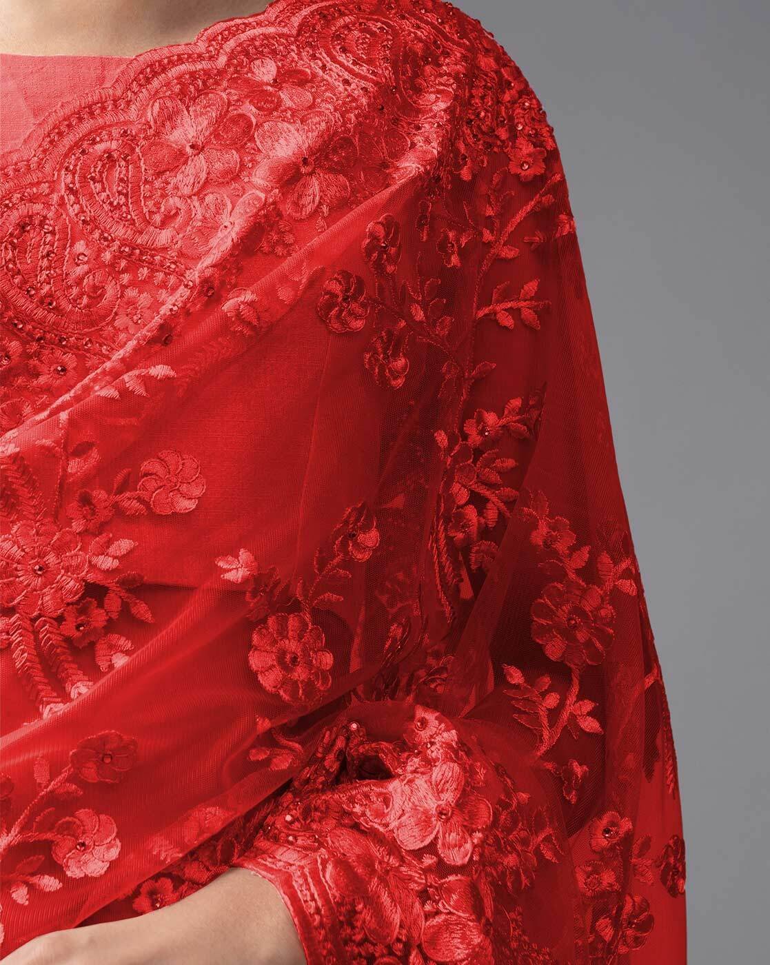 Embroidered Saree with Scalloped Border